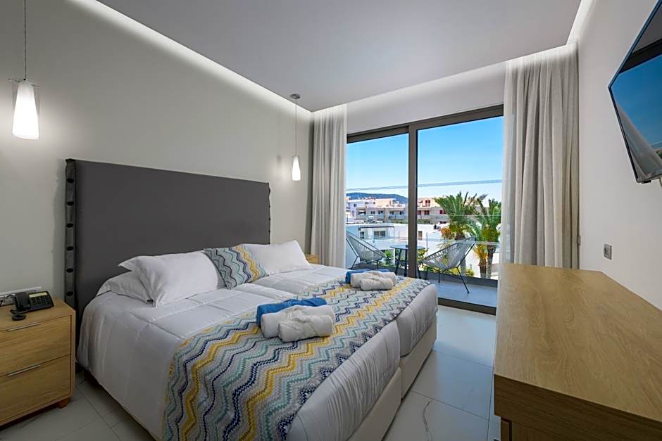 This room opens to a private balcony with garden views and side Aegean Sea views. It comes with a satellite TV, mini fridge and hairdryer.